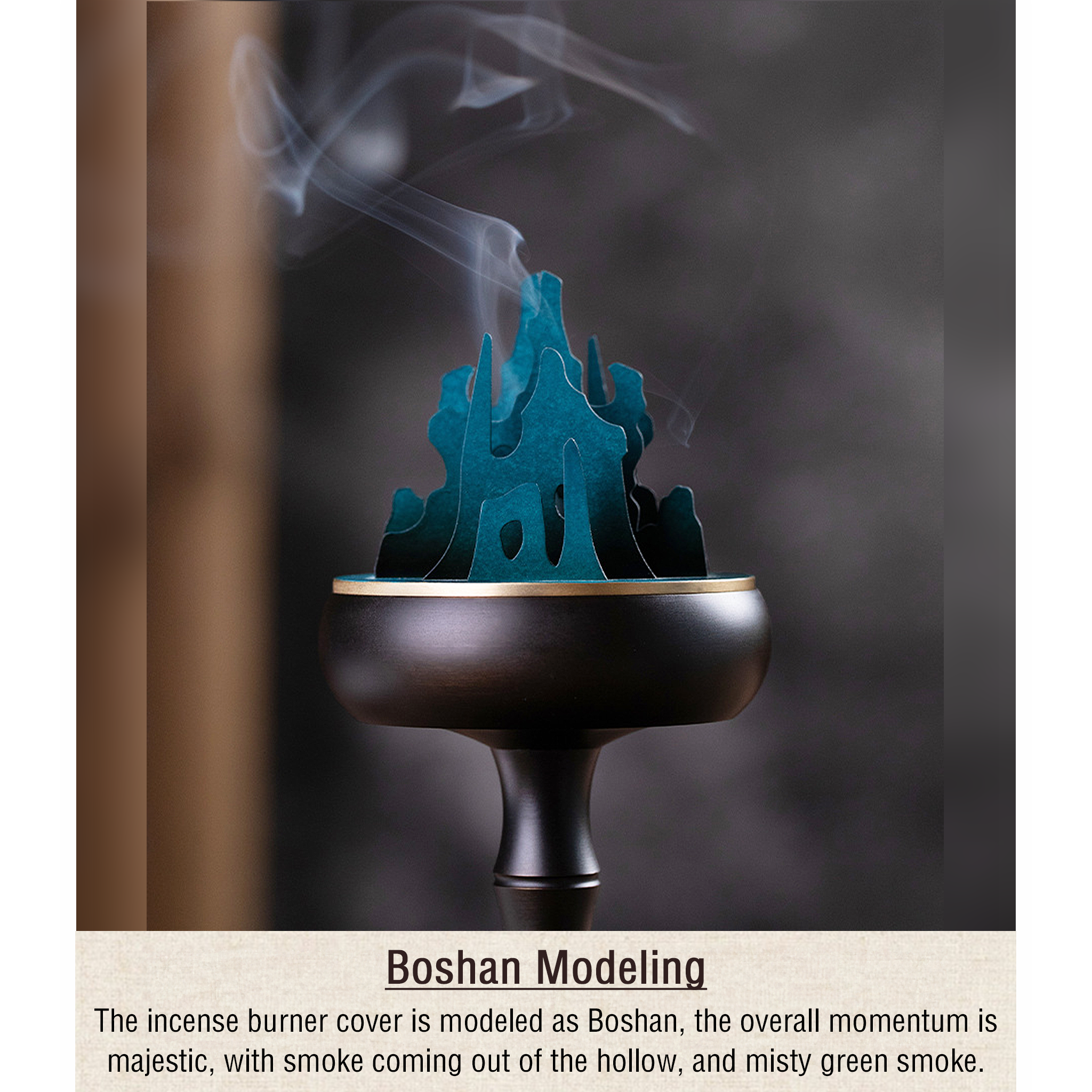 The burner's lid is inspired by the majestic Bosan mountains, creating a grand and imposing presence. The smoke escapes through the hollow design, creating a mesmerizing effect of ethereal swirls.
