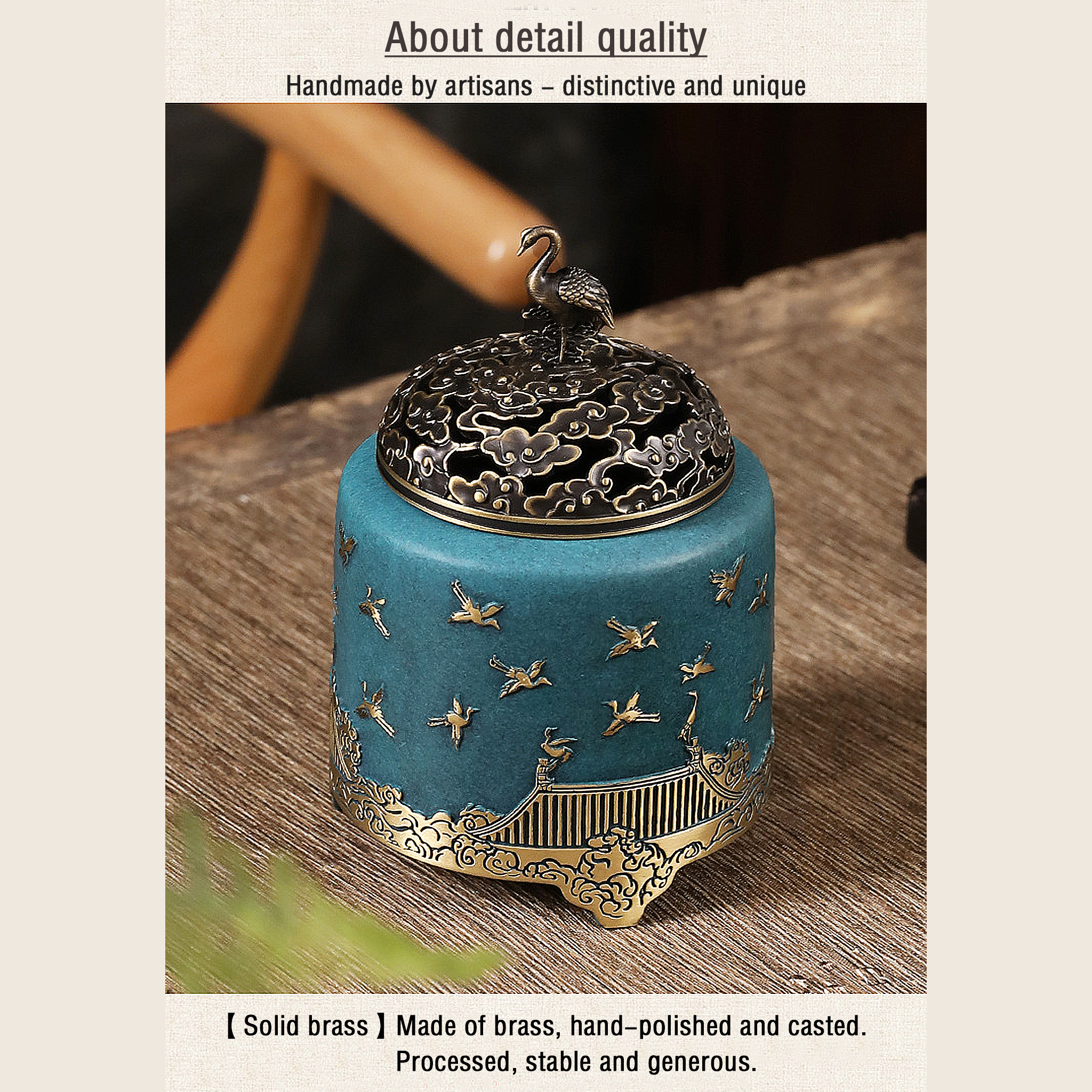 Unser Ruihe-Räuchergefäß zeugt von außergewöhnlicher Handwerkskunst und Liebe zum Detail und weist die folgenden Merkmale auf: