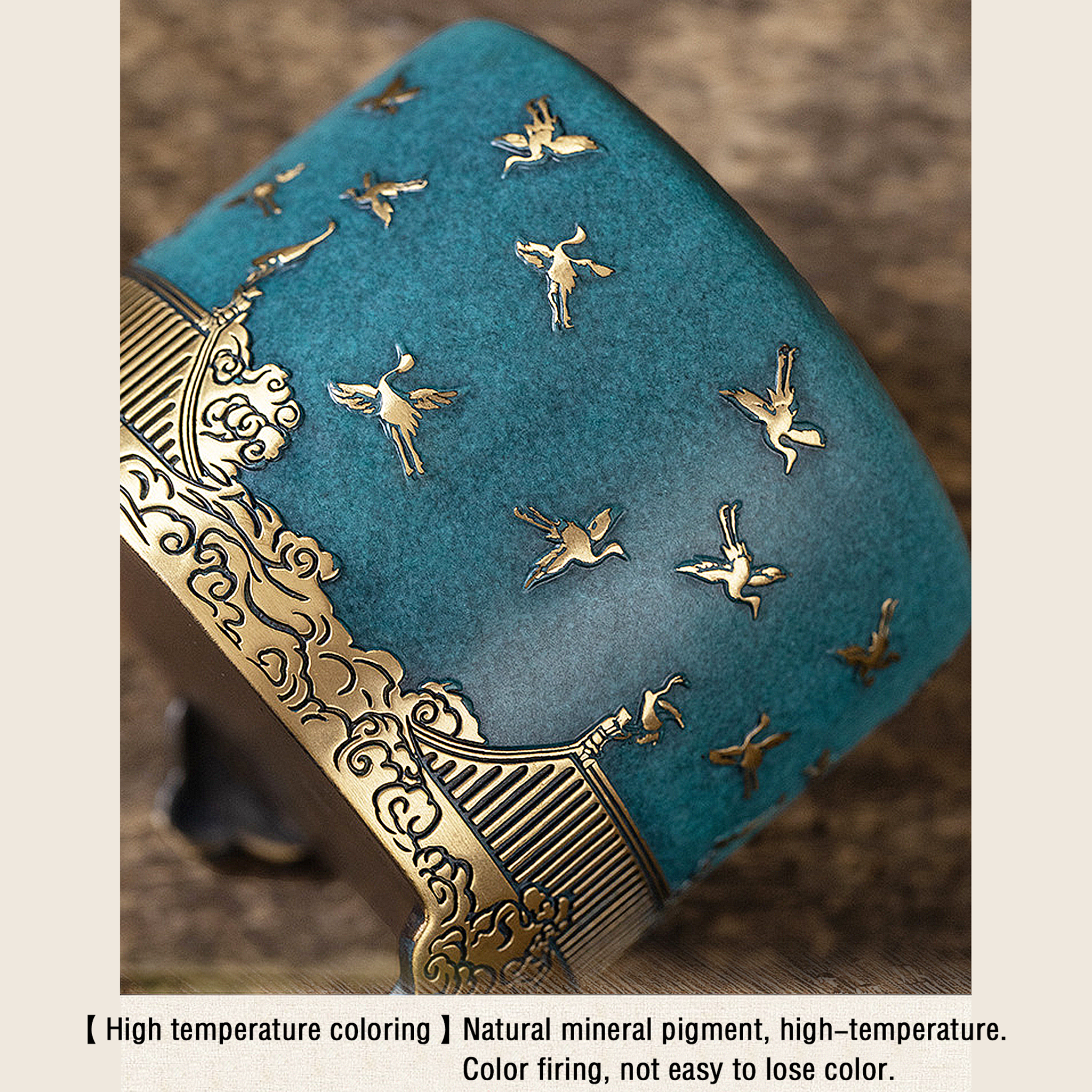 Durch sorgfältiges Brennen bei hohen Temperaturen mit natürlichen Mineralpigmenten gefärbt, behält der Brenner seine leuchtenden Farbtöne, ohne zu verblassen.