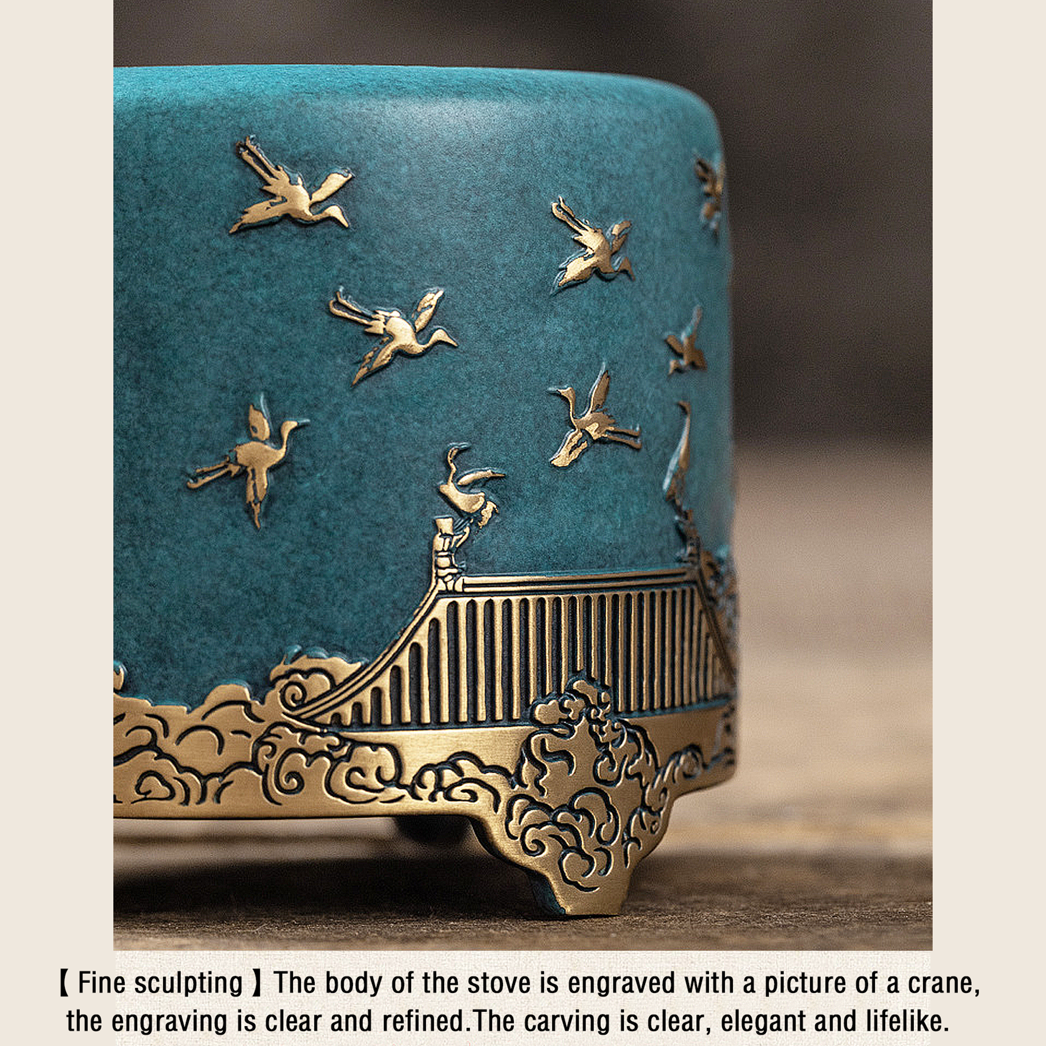Der Körper des Brenners weist das fein geschnitzte Design eines majestätischen Kranichs auf und strahlt eine Aura der Raffinesse und des Realismus aus.
