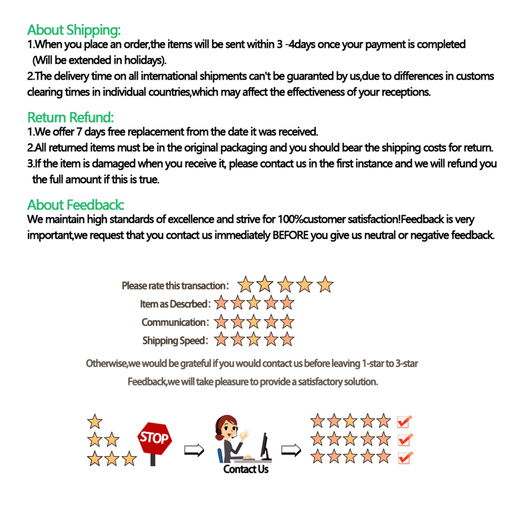 1. Aufgrund von Unterschieden in den Produktchargen kann die Verpackung variieren, während die manuelle Messung leicht ungenau ist, bitte beachten Sie die Sachlage.