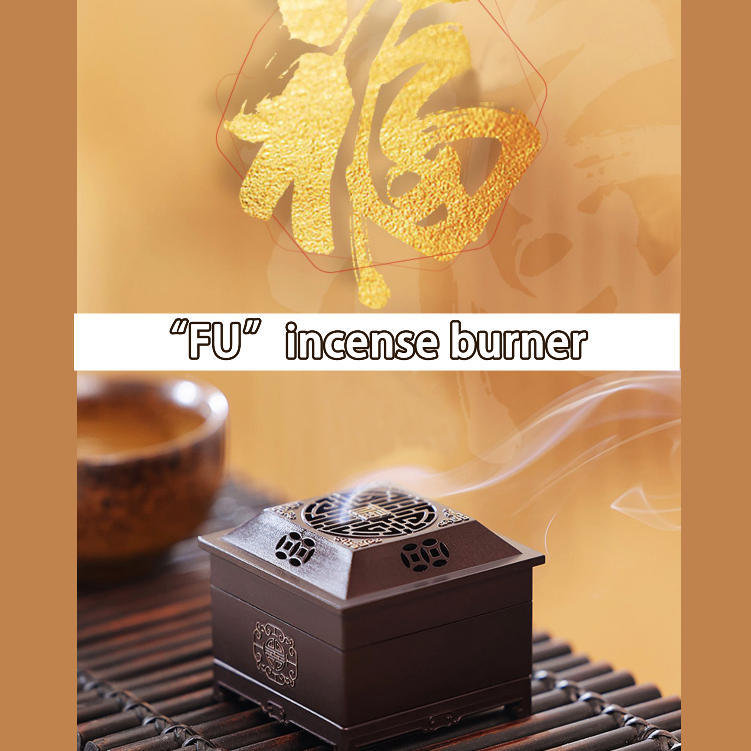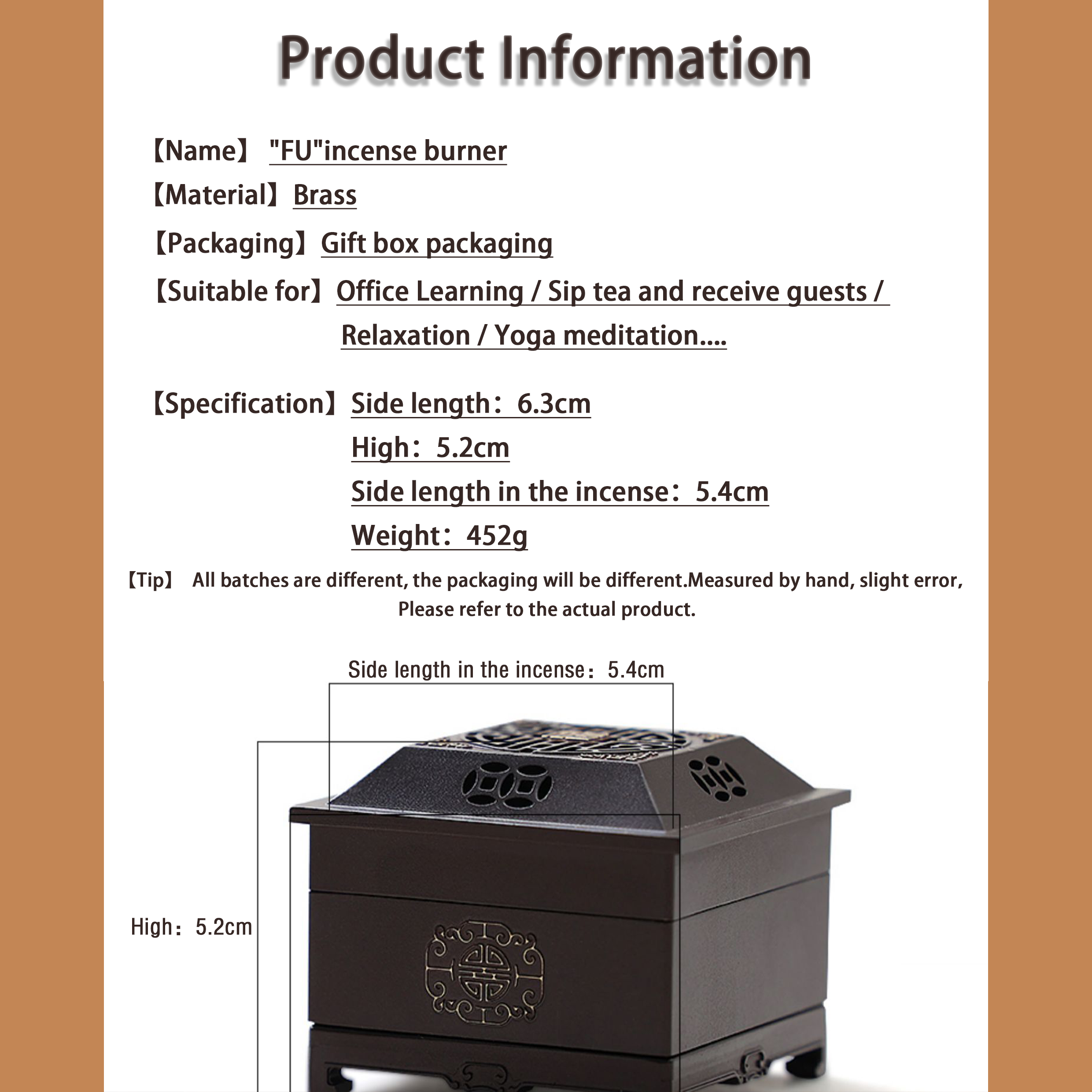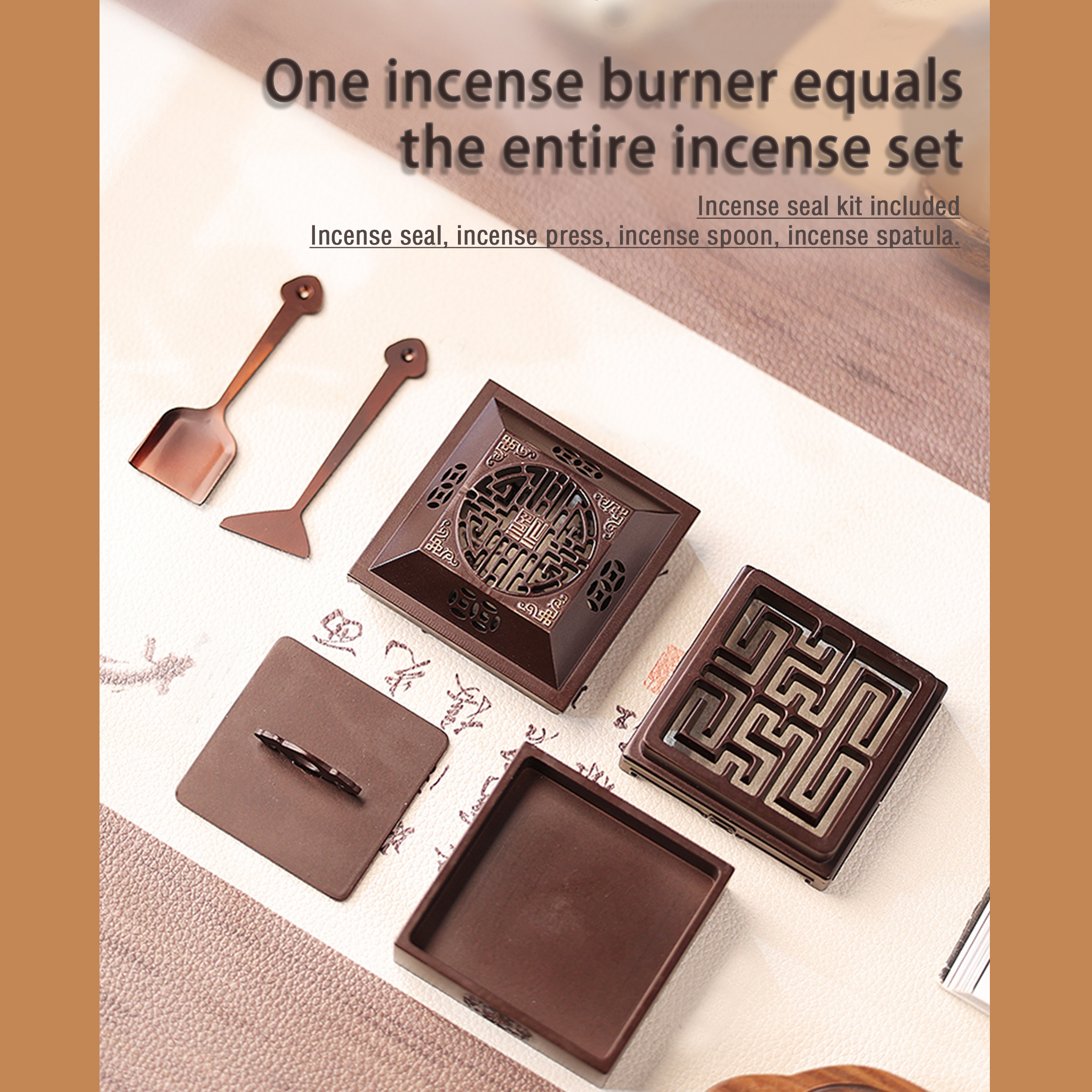 Forno per incenso con sigillo di benedizione "FU", bruciatore di incenso in rame puro, set taoista, bruciatore di fragranze, incenso per la casa, polvere per incenso, strumento per modellare il sigillo di incenso - set regalo