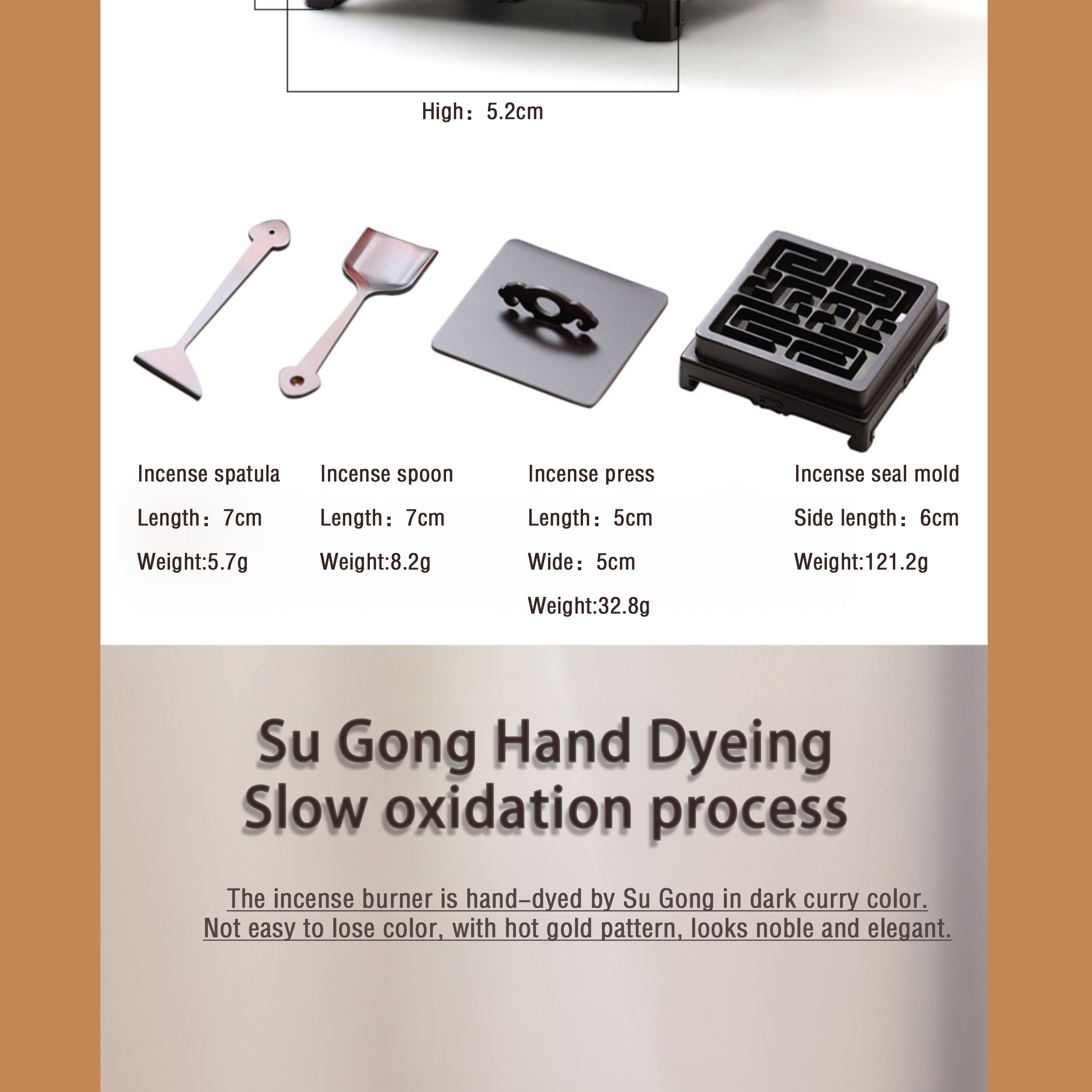 4. Questo prodotto è solo un set per bruciare l'incenso, non contiene polvere di incenso, cenere di incenso e pallet !