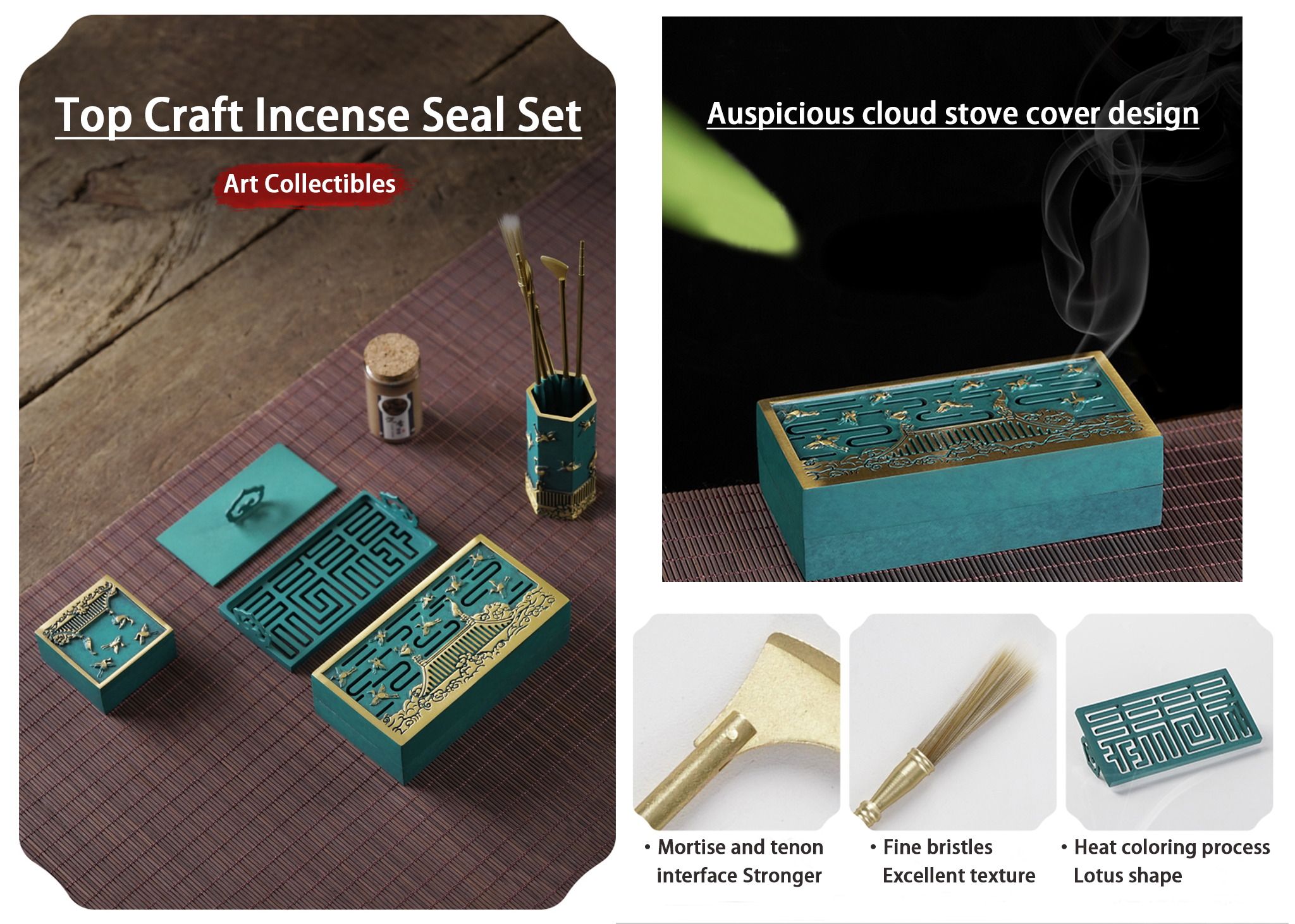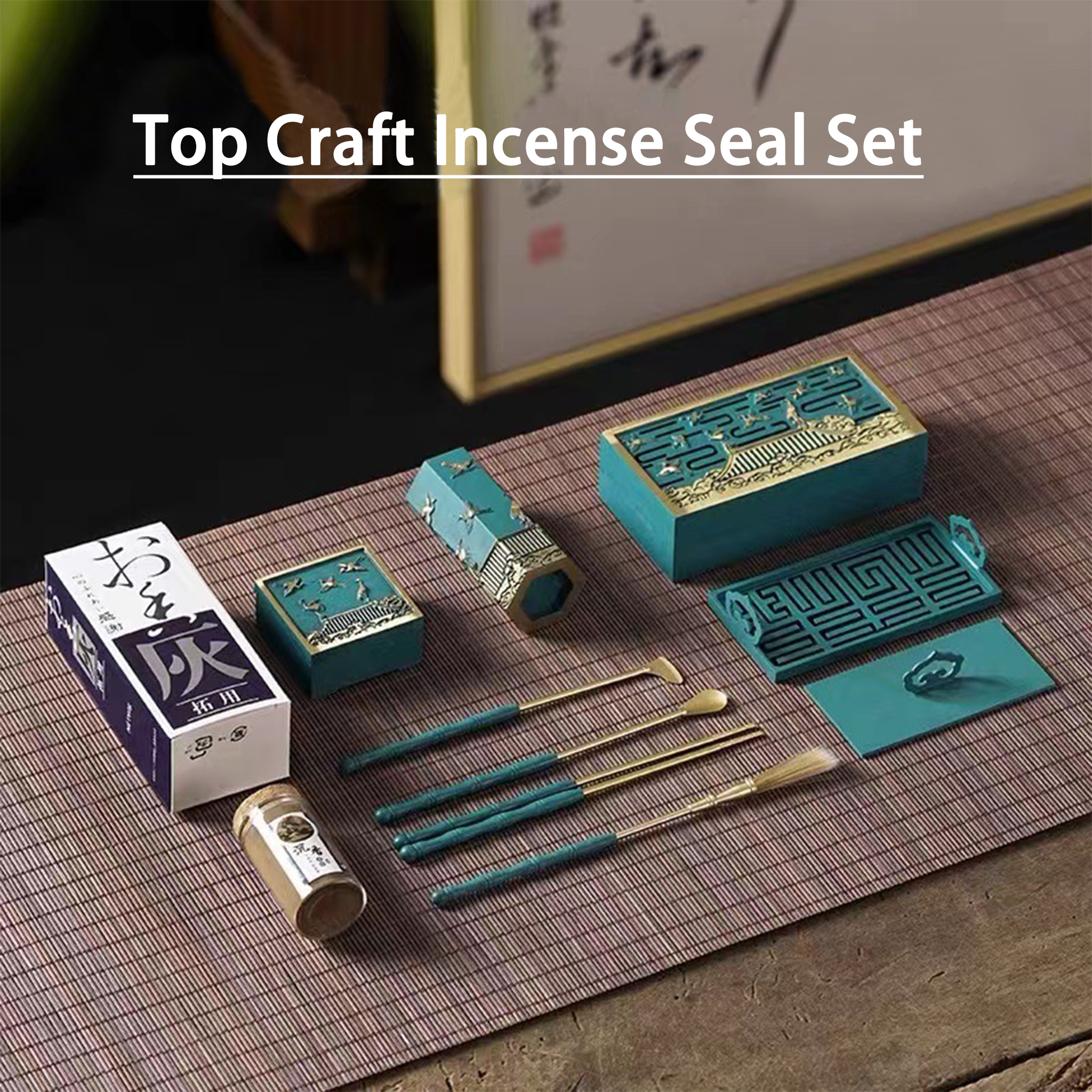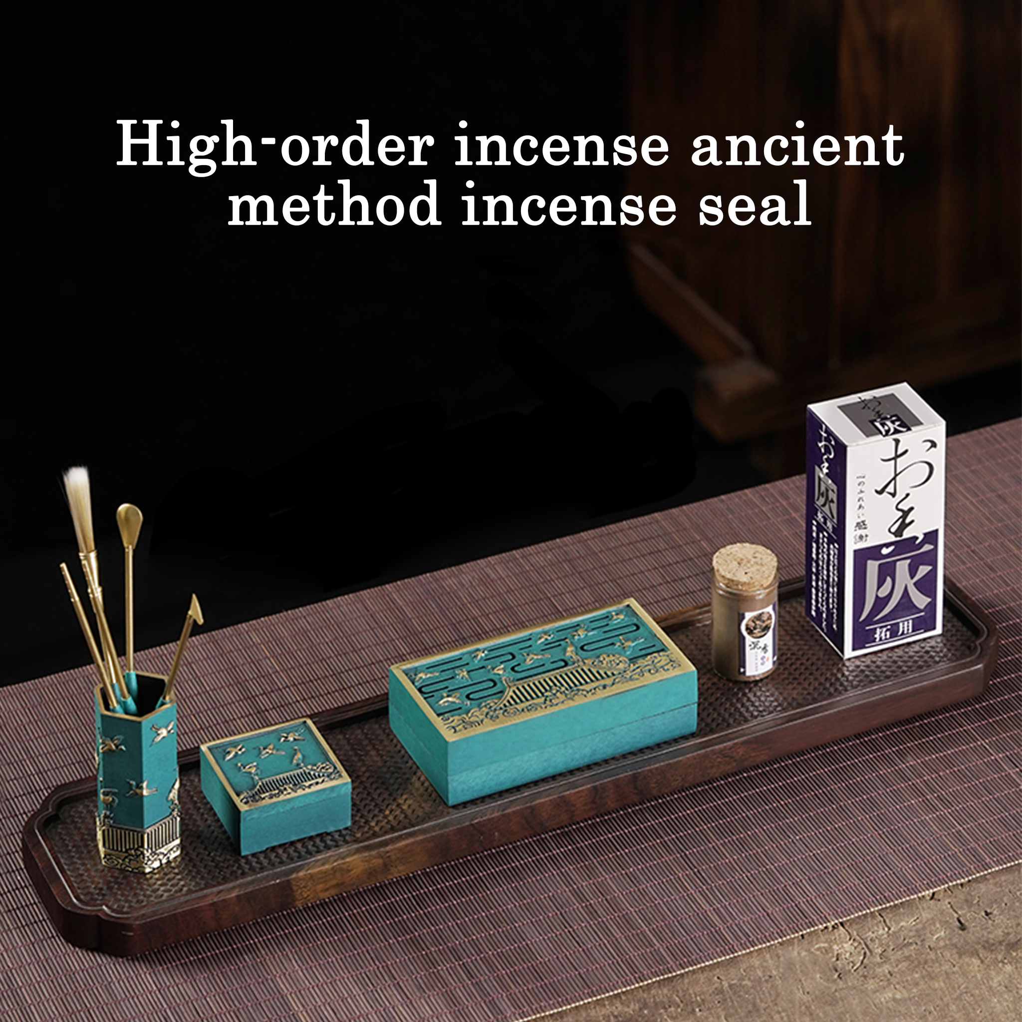 New Chinese Pure Copper Blue Incense Seal Set With Auspicious Crane Figure