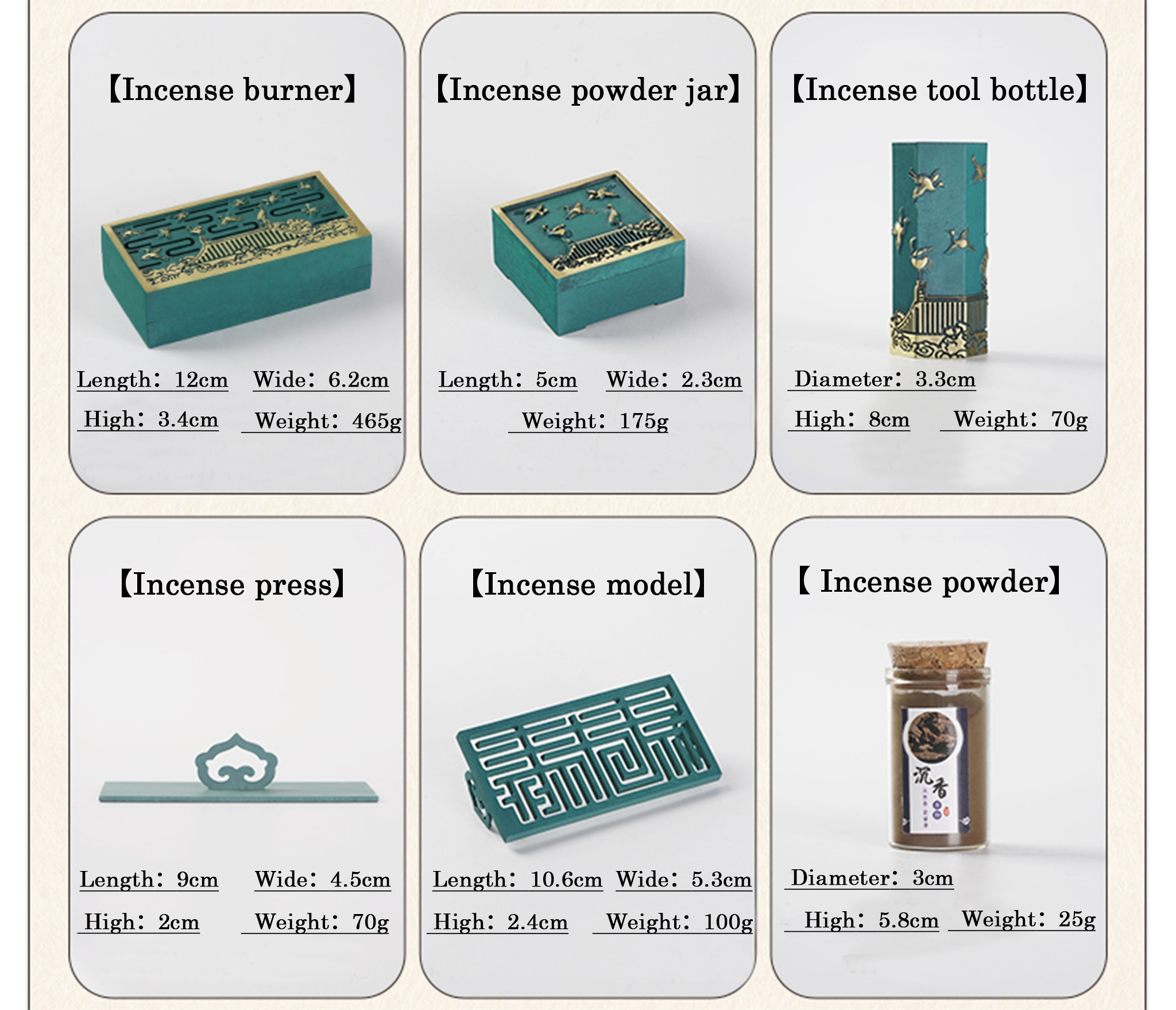 4. Questo prodotto link contiene un set brucia incenso, polvere/cenere di incenso.